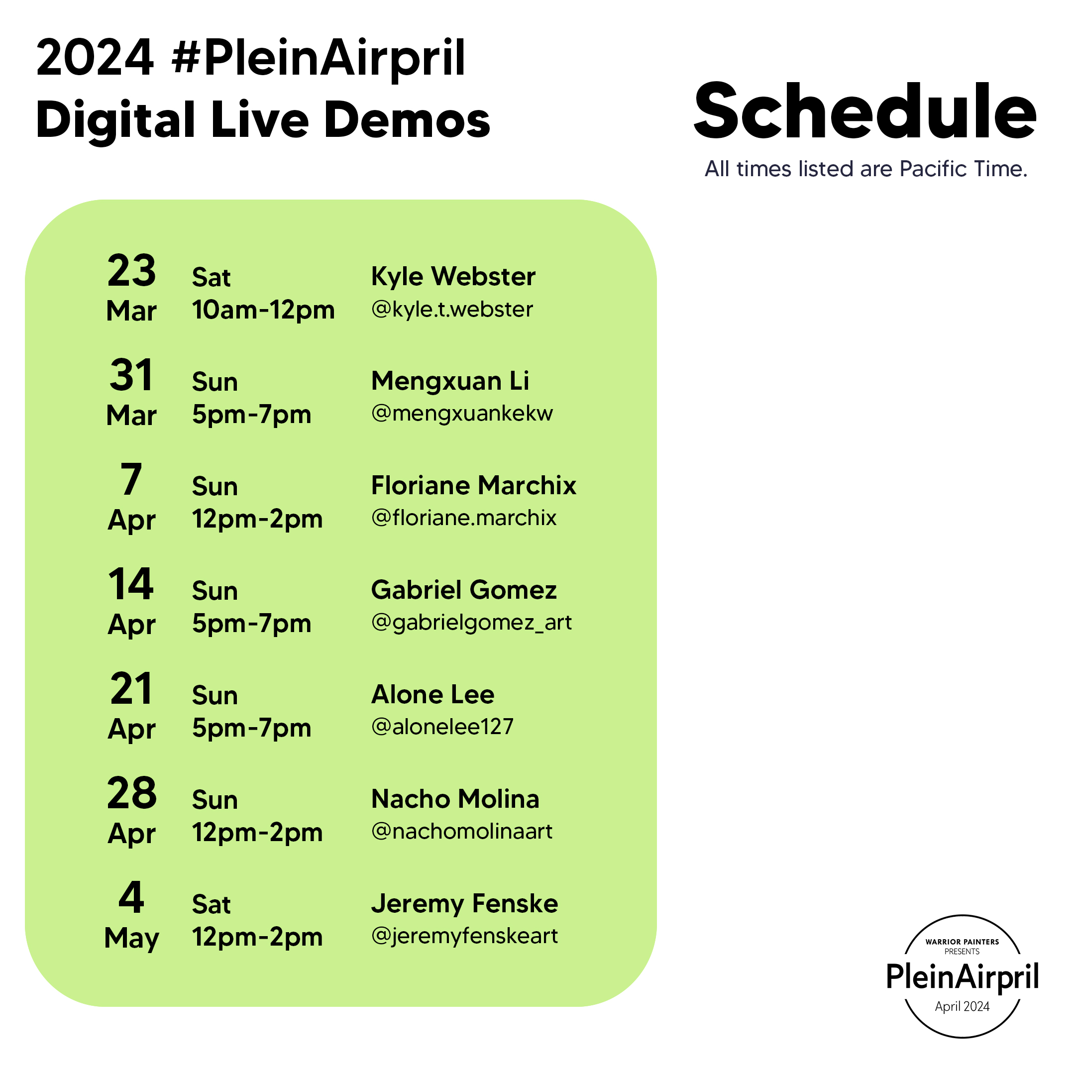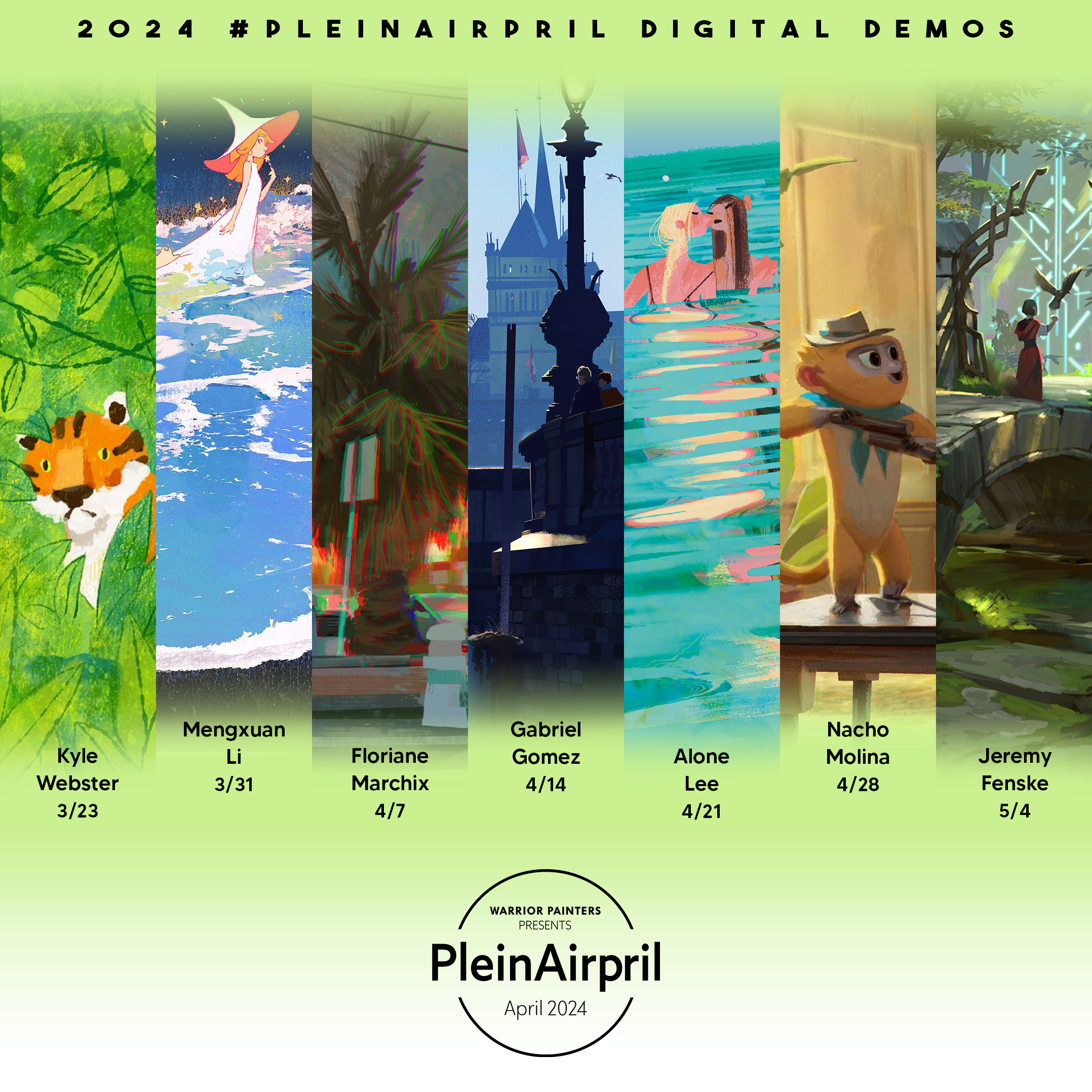 This #PleinAirpril, we invited a total of 13 artists from around the world to conduct live demos and share their artistic processes and experiences with everyone! This page has the details for the digital live demo pack (with 7 artists).